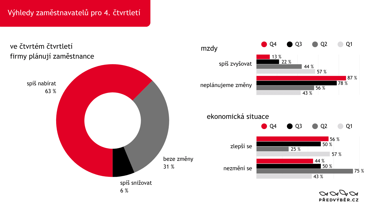 Nabírat lidi plánuje 63 % podniků a 56 % očekává zlepšení ekonomické situace v horizontu čtvrt až půl roku. „Výrazné oživení hlásí nábor technických profesí,“ říká František Boudný, ředitel Předvýběru.CZ.